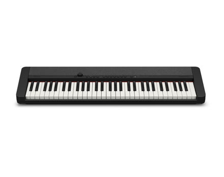 Pakke med Casiotone CT-S1 lettvekts digitalpiano, keyboardstativ, hodetelefoner, AUX-kabel, notestativ og strømadapter.