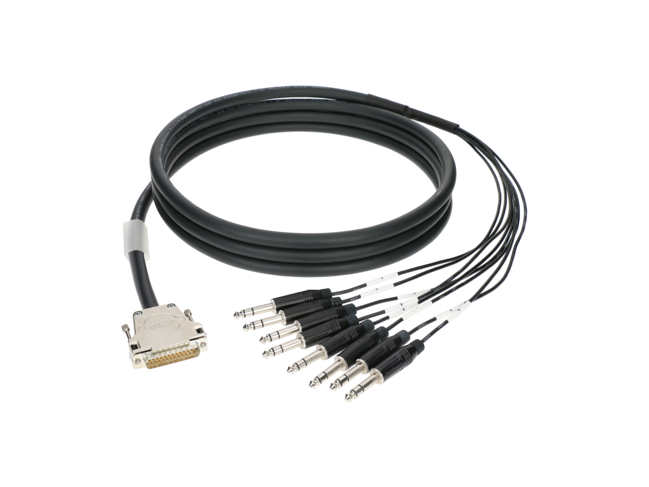 Kabelen er bygget med Klotz PolyWIRE flerkjernede studioledere med XLPE-isolasjon, noe som sikrer lav kapasitans og høy fleksibilitet. Den 25-pinners D-Sub-kontakten følger AES59-standarden og er kompatibel med TASCAM, Yamaha, Mackie, Digidesign og Focusrite. De åtte stereojack-pluggene i metallhus gir robusthet og lang levetid, mens en sterk vevd hylse og gjennomsiktige krympehylser gjør kabelen enkel å organisere og merke.