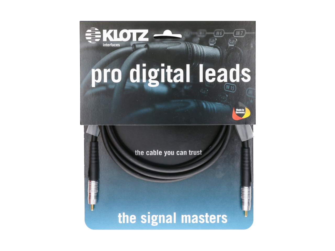 Klotz D7-SPDIF er en pålitelig 2 meters koaksialkabel med nøyaktig 75 ohm impedans for optimal overføring av S/PDIF-signaler og analog komposittvideo. Den fleksible konstruksjonen, solide skjermingen og gullbelagte RCA-kontakter gir stabil ytelse med lav demping.