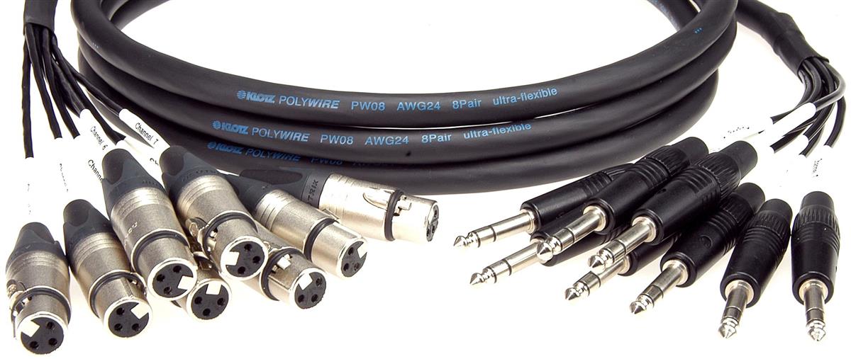 Kabelen er laget med Klotz’ anerkjente PolyWIRE studio-multikabel, som tilbyr lav kapasitans (85 pF/m), høy fleksibilitet og utmerket skjerming mot interferens. Den tverrbundne polyetylenisolasjonen (XLPE) beskytter lederne mot varme og mekanisk slitasje, mens pigtailene er beskyttet av en sterk, selvslukkende vevd hylse. Hver kabel er tydelig nummerert og har gjennomsiktige krympehylser i begge ender for enkel merking. Utstyrt med originale Neutrik-kontakter for profesjonell drift og lang levetid.