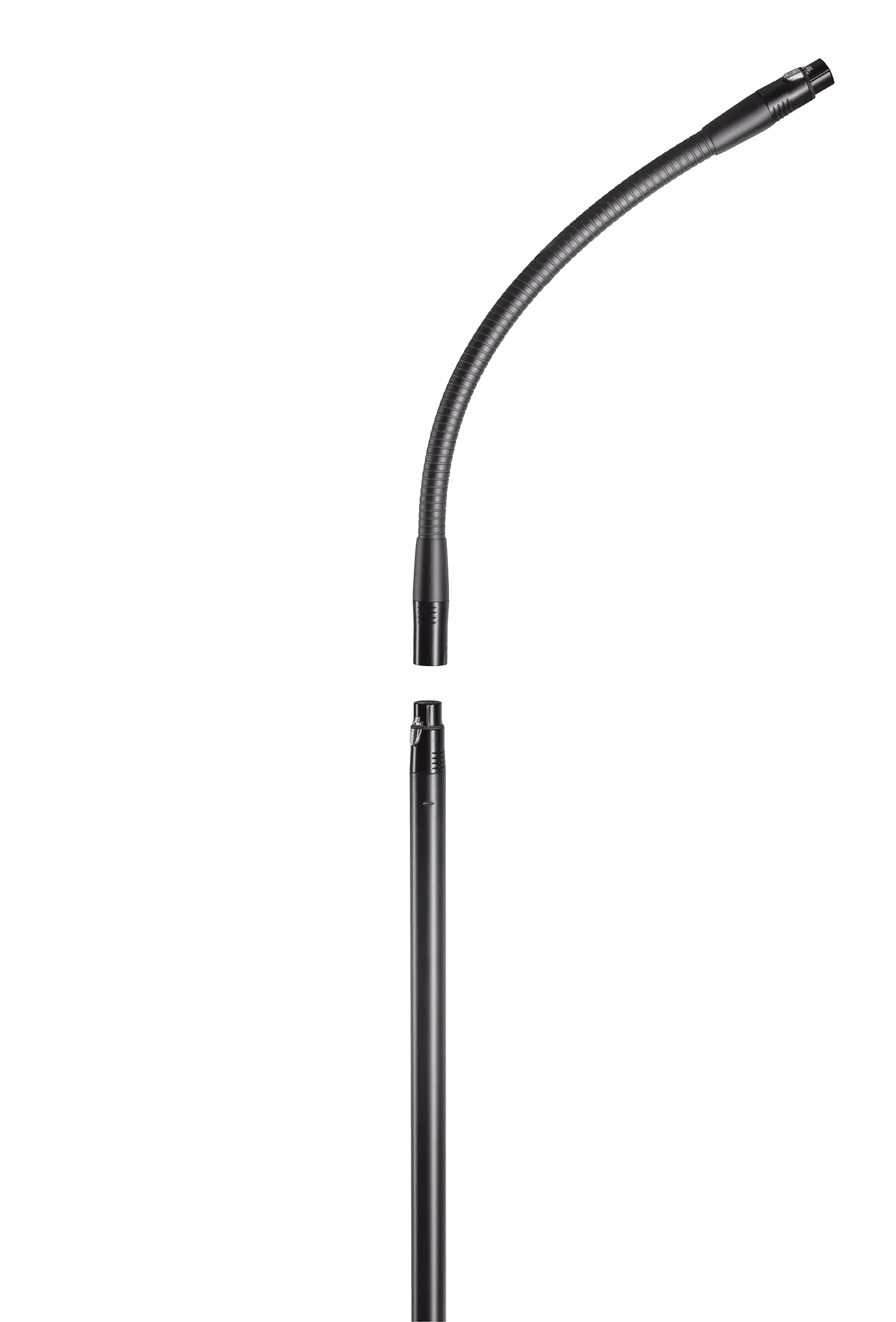 Digitale lydkabler av høy kvalitet er innebygd både i stativet og den medfølgende svanehalsen. Kabler trekkes inn, loddes og testes manuelt ved KLOTZ AIS-fabrikken i Tyskland. I bunnen av stativrøret sitter en vinklet 3-pins XLR-kontakt for enkel tilkobling til ekstern kabel.