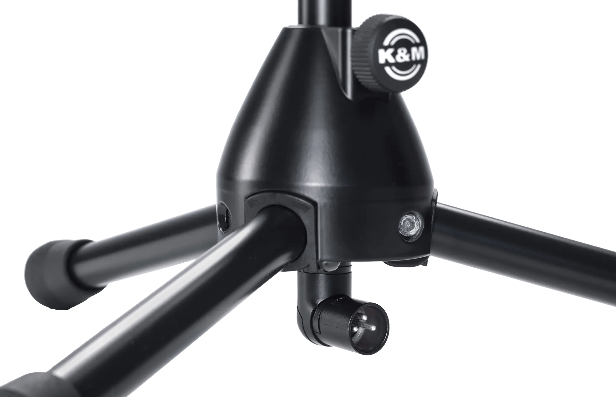 K&M 27500 er et profesjonelt mikrofonstativ utviklet for faste og mobile lydoppsett der ryddig kabelføring, høy driftssikkerhet og stabilitet er avgjørende. Stativet har integrerte, kablede XLR-tilkoblinger som lar mikrofonen kobles direkte til stativet uten behov for mikrofonklemme eller ekstern kabel.