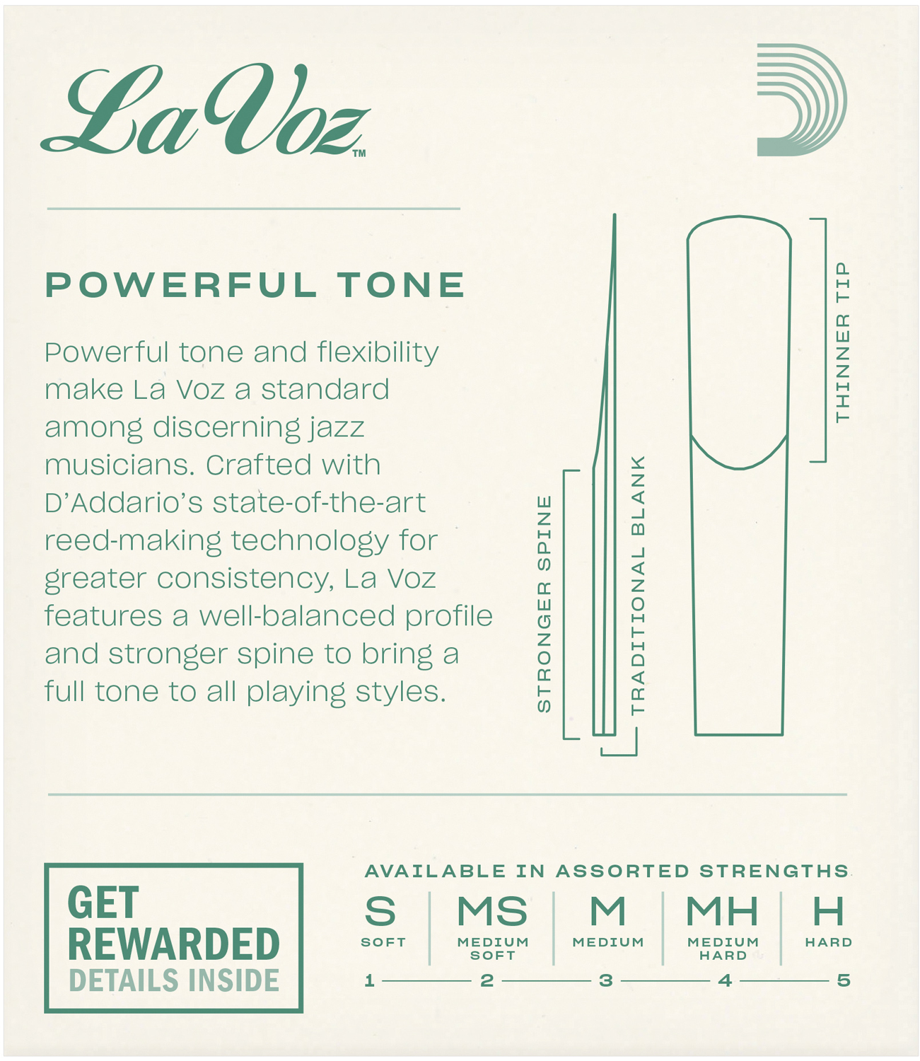 Av Premium kvalitet for jevn respons og spillbarhet. La Voz er det naturlige valget for mange av verdens topp jazz-klarinettister og saxofonister. Uslipte for en dyp og kraftig tone.