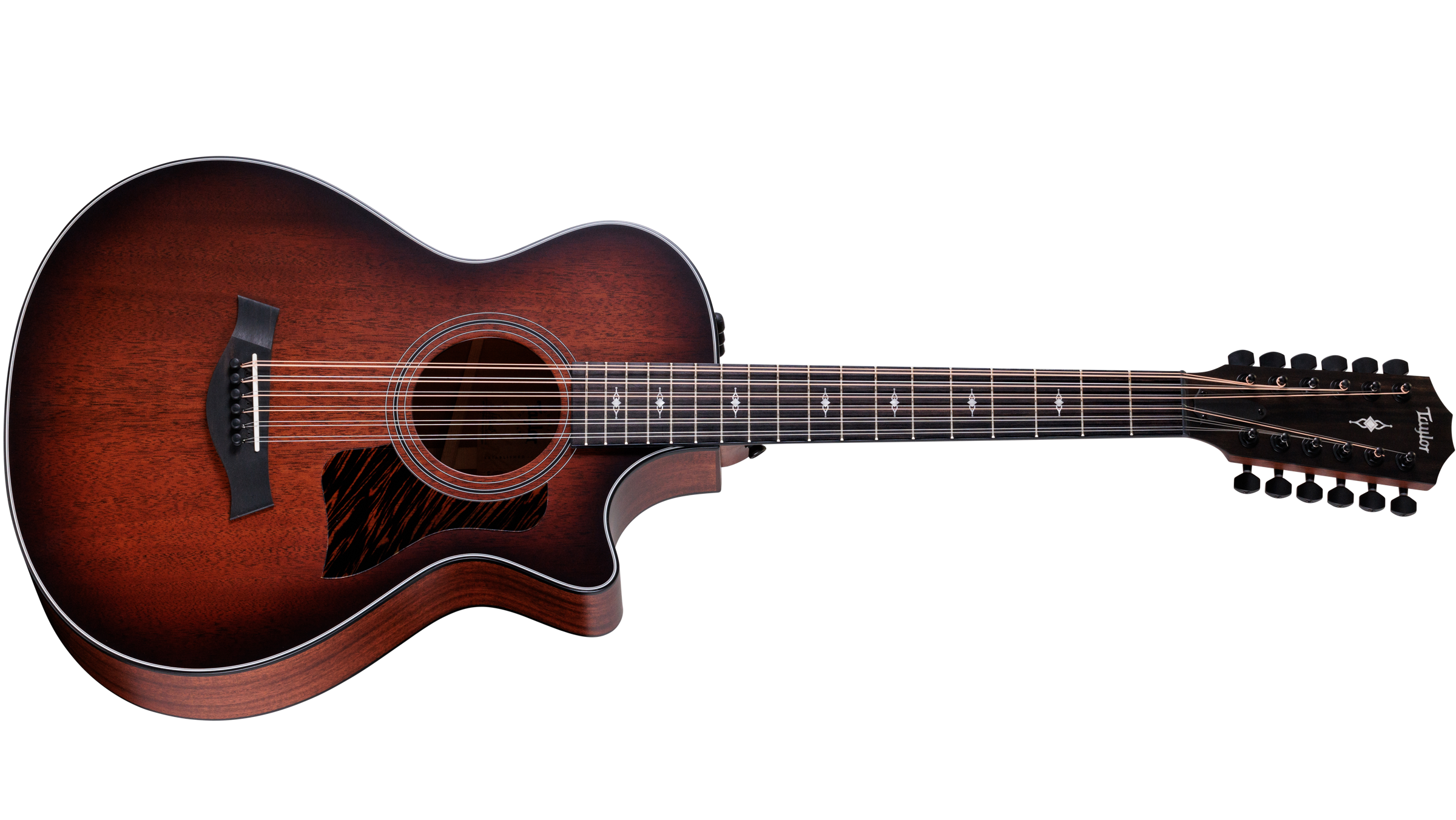 Taylor 362ce 12-Fret Grand Concert 12-String Acoustic-Electric Guitar i Shaded Edge Burst er designet for spillere som ønsker en balansert, varm 12-strengslyd i et kompakt og komfortabelt format. Den 12-fret halsen gir en økt tonal varme og mykere strengfølelse, mens Grand Concert-kroppen er ideell for fingerpicking.