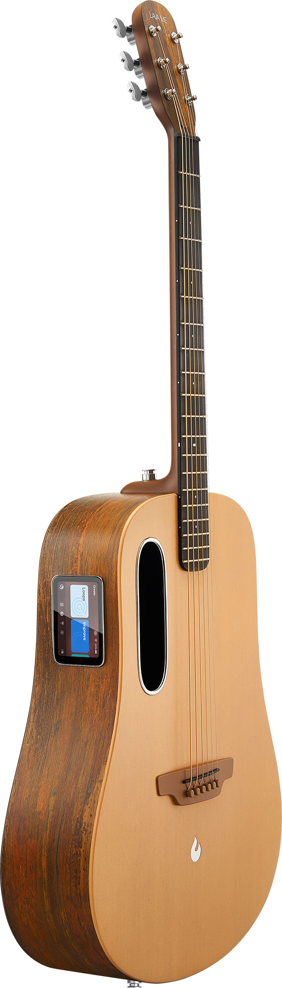 LAVA ME 4 SPRUCE SERIEN er designet for gitarister som elsker HILAVA Touchscreen-opplevelsen, men også elsker lyden av tradisjonelle gitarer. Med et varmebehandlet solid granlokk, Okume-hals, kropp laget av vakker burly HPL-laminat og en ny, banebrytende akustisk strukturell design, har Lava skapt en gitar som virkelig skinner akustisk og også blander effekter og akustisk lyd som aldri før.
