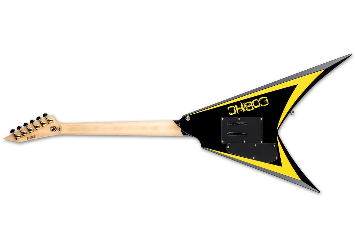 Baksiden av halsen har en svært glatt satinfinish for rask og uanstrengt spillbarhet, og er dekorert med gule bevels og det ikoniske COBHC-logoet. Maskinvaren er utført i gullfinish og inkluderer Grover stemmeskruer samt en Floyd Rose 1000 double-locking tremolobro, som gir stabil stemming selv under ekstrem bruk.