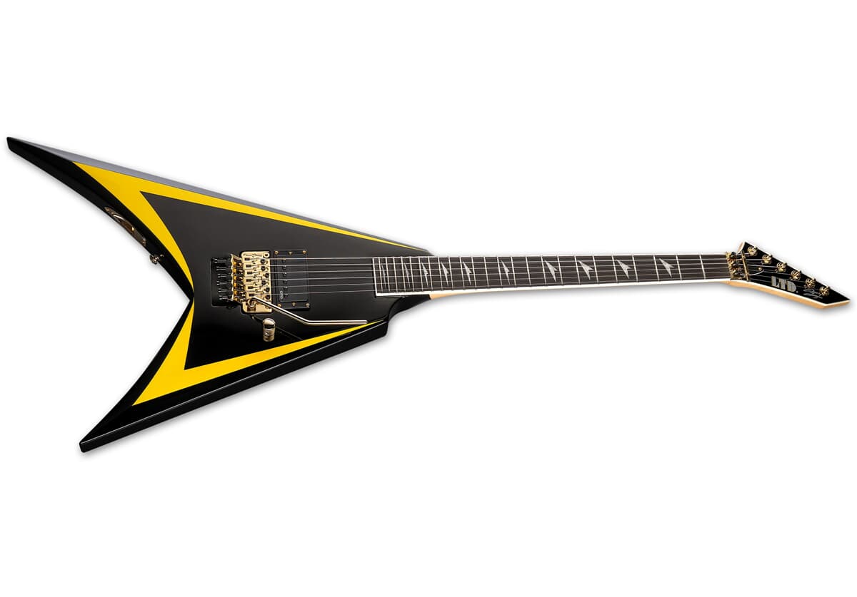 LTD Alexi Laiho Arrowhead SE 20th Anniversary er en spesialutgave signaturgitar som markerer 20-årsjubileet for Alexi Laihos samarbeid med ESP. Modellen er en hyllest til en av de første Alexi-signaturgitarene og bygger på hans karakteristiske offset V-form, med sort finish og markante gule bevels som umiddelbart assosieres med hans visuelle uttrykk.