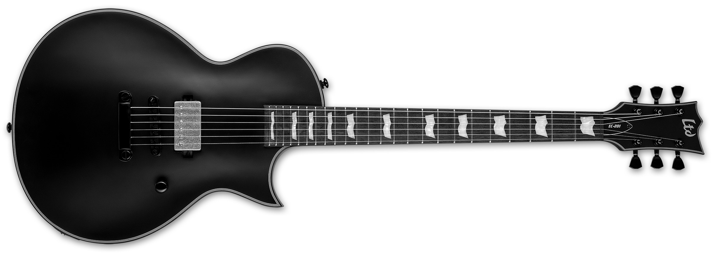 The LTD EC-201 offers a great way to get into the coolest aspects of the LTD EC Series at a price range you can really afford. A classic shape that's excellent for all musical styles and genres, the EC-201 looks amazing with multi-binding on the mahogany body and headstock and black binding on the roasted jatoba fingerboard. The EC-201 is also a great feeling guitar with set-neck construction for fast and easy access to the highest frets. It offers 24 extra-jumbo frets and ESP flag inlays, black hardware, and features an LTD bridge and tailpiece. Perhaps most important in the EC-201’s great tone is the single ESP LH-150B pickup with antique nickel cover. The LH-150B's hot output is perfect for rock and metal, but can also be split for single-coil sounds with the push-pull volume knob.CONSTRUCTION: Set-NeckSCALE: 24.75"BODY: MahoganyNECK:3Pc MahoganyFINGERBOARD: Roasted JatobaFINGERBOARD RADIUS: 350mmFINISH: Black SatinNUT WIDTH: 42mmNUT TYPE: MoldedNECK CONTOUR: Thin UFRETS/TYPE: 24 XJHARDWARE COLOR: BlackSTRAP BUTTON: StandardTUNERS: LTDBRIDGE: TOM TailpieceBRIDGE PU: ESP Designed LH-150B *(Pull Volume for Split)ELECTRONICS LAYOUT: Master Volume(Push/Pull)STRINGS: D'Addario XL110 (.010/.013/.017/.026/.036/.046)CASE: EC GUITAR FORM FIT CASECASE INCLUDED: N