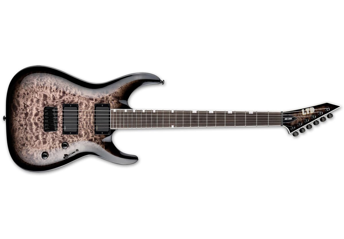 LTD MH-400HT QM See Thru Black Sunburst kombinerer MH-seriens raske spillbarhet med profesjonelle komponenter og kompromissløs byggekvalitet. Resultatet er en kraftig, presis og visuelt slående elgitar som leverer stabilitet og tone for både scene og studio.