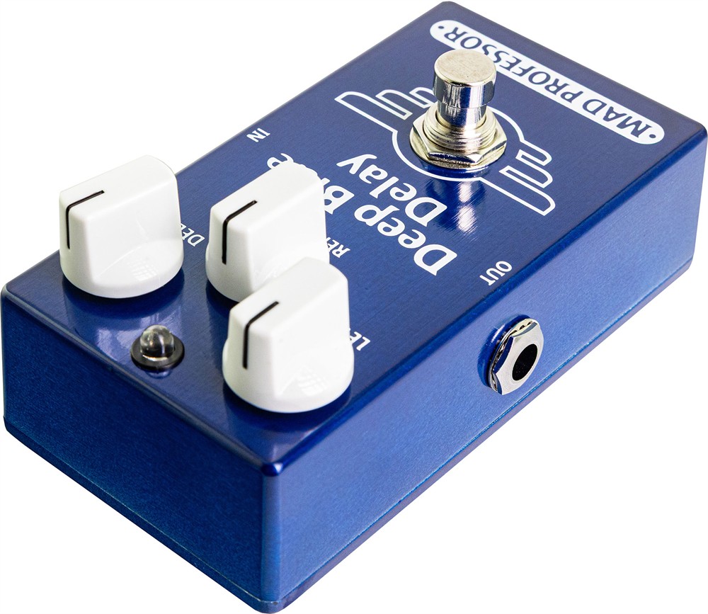 Mad Professor Deep Blue Delay er en kompakt og musikalsk delay-pedal som kombinerer digital delay-teknologi med en helt analog direkte signalvei. Pedalen er utviklet for å levere naturlige og varme ekkoer uten å påvirke gitarens originale tone, og er spesielt kjent for å fungere eksepsjonelt godt sammen med overdrive og distortion.