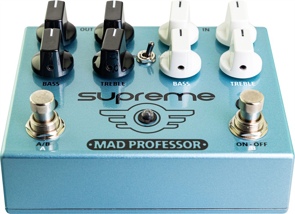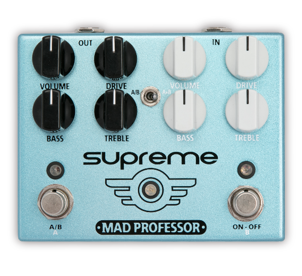 Mad Professor Supreme Dual Overdrive er en analog dobbelt overdrivepedal utviklet i samarbeid med Matt Schofield, med mål om å samle to komplementære og profesjonelle overdrive-lyder i én pedal. Med ett fottrykk kan du veksle sømløst mellom to distinkte gain- og volumnivåer, eller stable kanalene for økt metning og kompresjon.