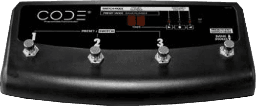 A 4-way momentary footswitch for CODE. Switches one to three allow you to recall stored presets and switch four scrolls through all the available presets. This footswitch has indicator lights so that you can easily see which setting your working with.