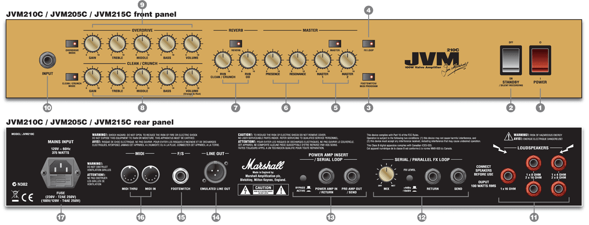 Deliver your best sounds with the 50W JVM215.It has extensive features, a 1x12” Celestion G12B and is the most portable in the JVM range. No matter where you are performing the JVM215is perfect. An expansive six mode sound palette, from clean to a heavy overdrive, will show off your versatility. To guide you through six modes, three on each channel, there's an LED indicator light which illuminates red, orange and green depending on the mode.