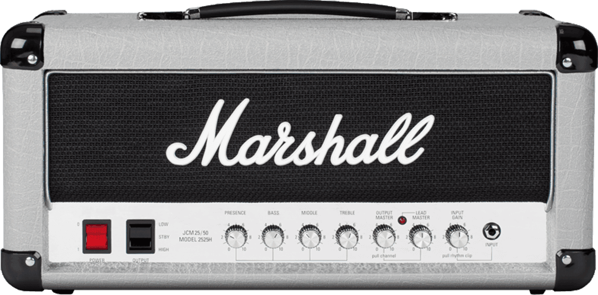 The 2525H delivers the heavy grit and sparkling classic rock tones of 1987. Based on the 25thanniversary Silver Jubilee series, this 20W 2525H has two footswitchable channels, a sleek silver look and a portable structure. With the ability to add extra distortion and reduce power this amp is perfect for those who love everything from rock to metal and want to play in different environments.