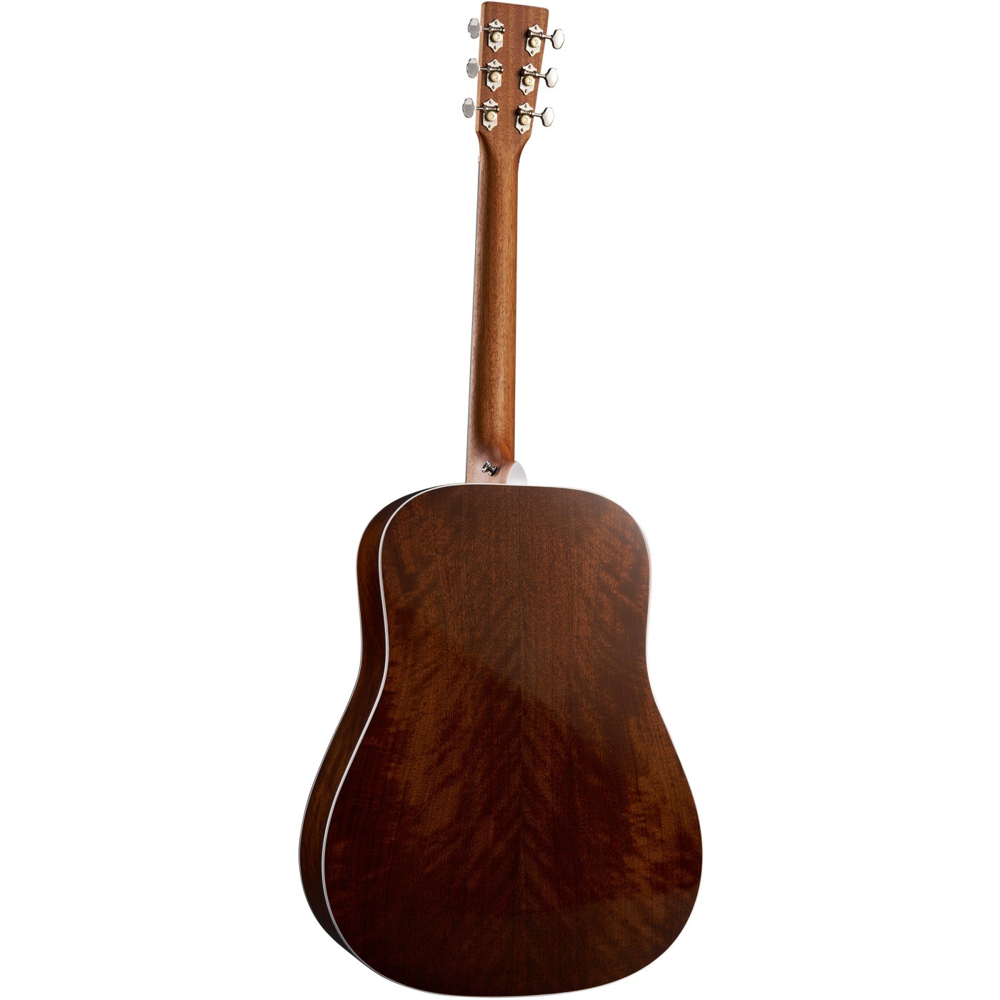 Gitaren har et solid granlokk kombinert med solid sort valnøtt i bunn og sider, levert i høyglanset finish. Valnøtt, ofte omtalt som “Pennsylvania Rosewood”, bidrar med varme, klarhet og tonal kompleksitet, og gir et klanglig alternativ som ligger tett opp mot mer tradisjonelle tonewoods. Dreadnought-kroppen sammen med scalloped X-bracing gir tydelig projeksjon, fyldig bass og god dynamisk respons.