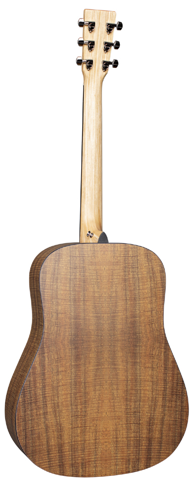 Lokket, sidene og bunnen er laget av vakker hawaiisk koa som gir varme og tydelige overtoner. Den scalloped X-bracingen bidrar til resonans og volum. Gitaren er utstyrt med Fishman MX-forforsterker med kontroller for volum og tone, som gjør den scene- og studioklar. Leveres med en slitesterk gigbag.