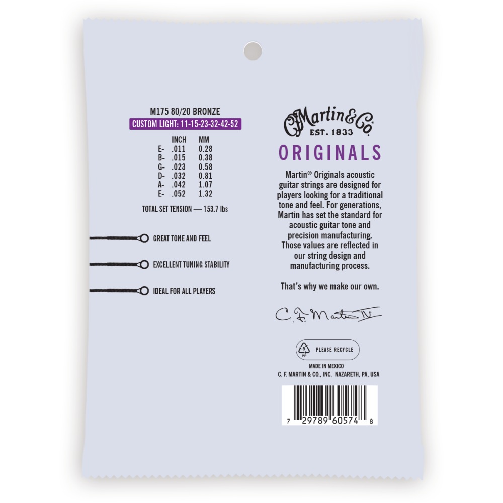 Martin M175 Originals 80/20 Bronze Stings - Custom Light