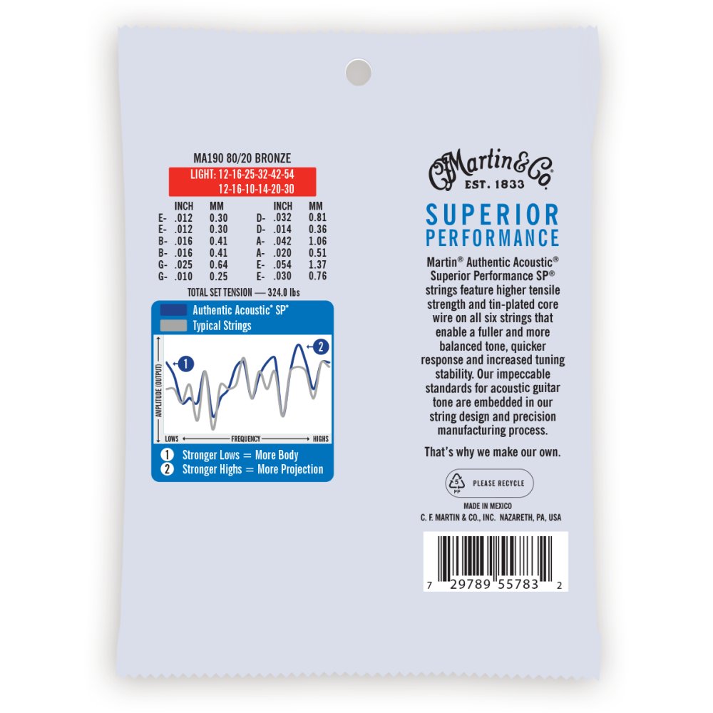 Martin MA190 Authentic Acoustic SP 80/20 Bronze - Light 12-String