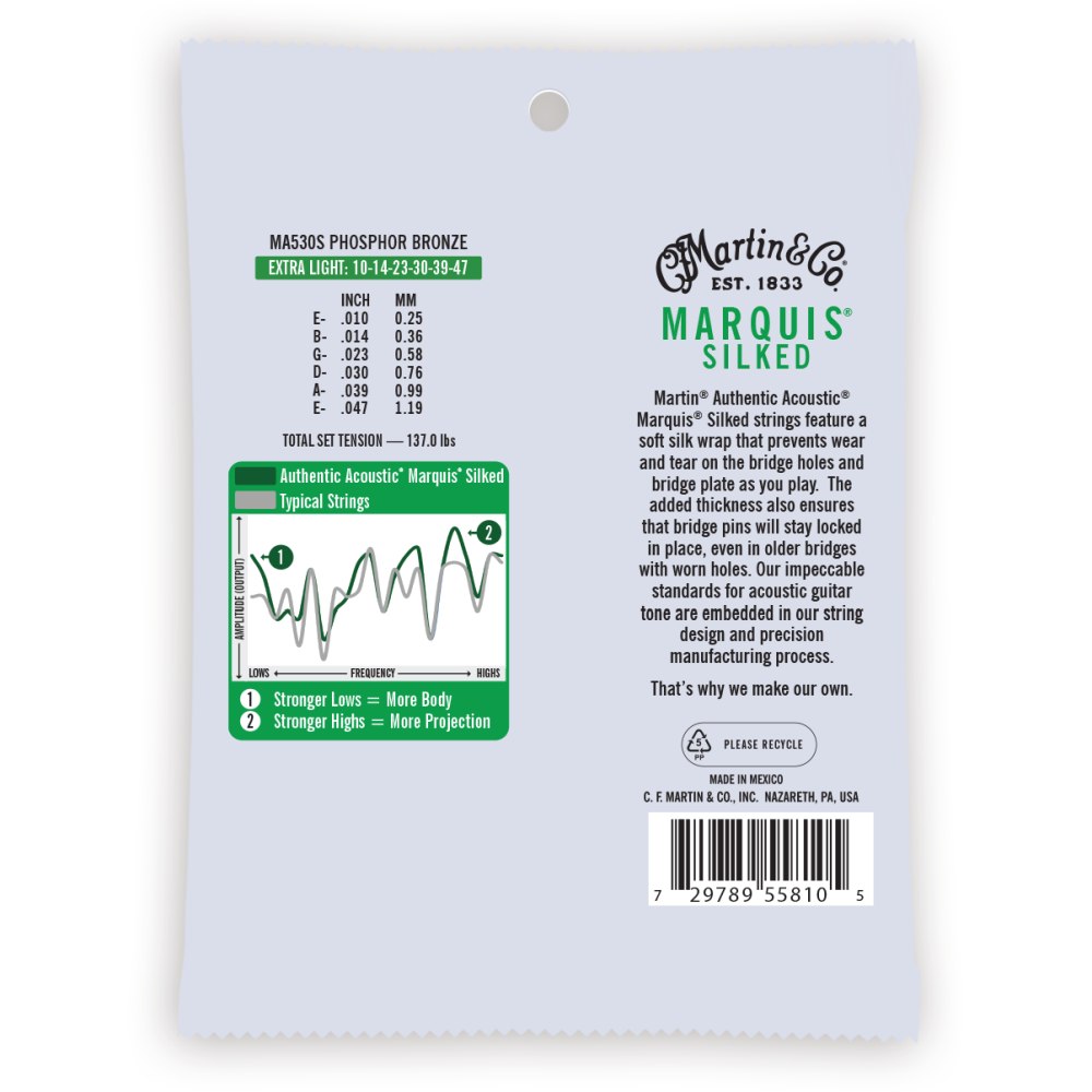 Martin MA530S Authentic Acoustic Marquis Silked Guitar Strings Phosphor Bronze - Extra Light
