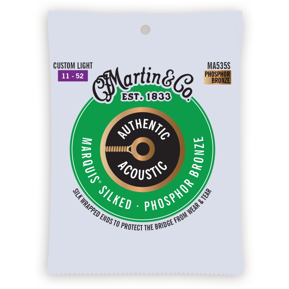 Martin MA535S Authentic Acoustic Marquis Silked Guitar Strings 92/8 Phosphor Bronze - Custom Light