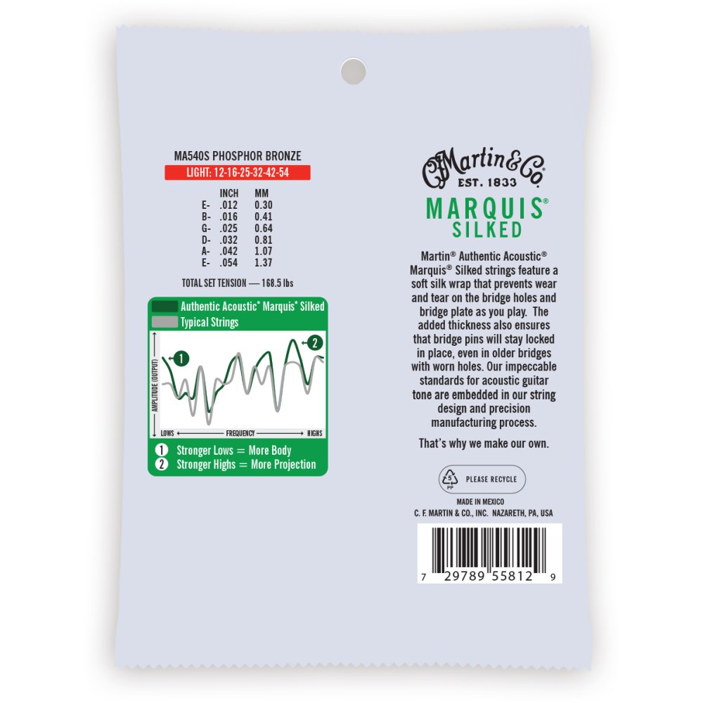 Martin MA540S Authentic Acoustic Marquis Silked Guitar Strings 92/8 Phosphor Bronze - Light