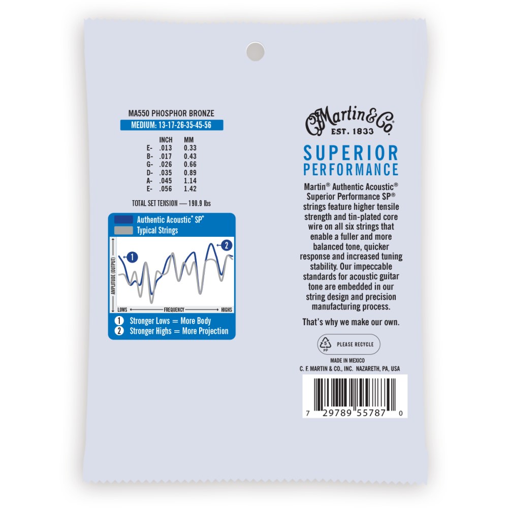 Authentic Acoustic-serien er nøye utformet med lyd, levetid og spillbarhet som de tre prioriteringene til utviklerne hos Martin Guitar.Akkurat som i gitarene sine, har de her brukt råvarer av absolutt topp kvalitet, og produksjonen er også av samme nitidige presisjon.For en så sterk strekkfasthet er det brukt en tinnbelagt kjerne på de spunnede trådene. Dette øker strengens motstand mot korrosjon og lar den opprettholde lyden og tonen lenger, uten å bli behandlet med noen form for belegg.