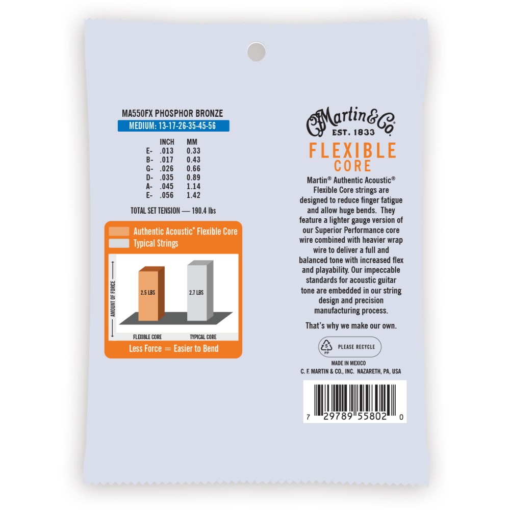 Martin MA550FX Authentic Acoustic Flexible Core Strings Phosphor Bronze - Medium