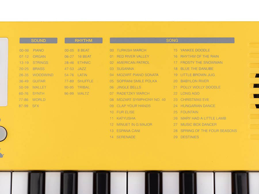 • Musikkbibliotek: 30 sanger (med “Melody Off”-funksjon)