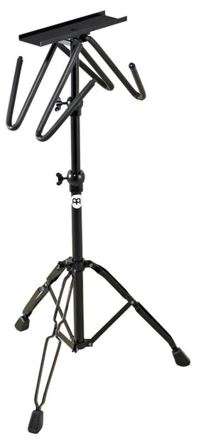 Solid og robust design med tre dobbeltforsterkede ben. De to polstrede bøylearmene for cymbaler kan enkelt justeres med en standard trommenøkkel. En hylle er lagt til mellom de to cymbal-bøylearmene for ulikt trommetilbehør.