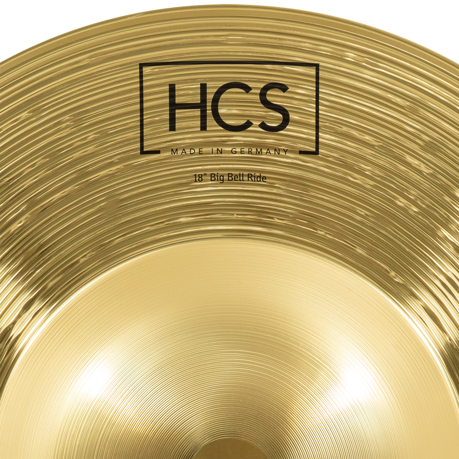 Meinl HCS Big Bell Ride - HCS18BBR. 18 Big Bell Ride av MS63 legering og med dreid overside. HCS18BBR er en kompakt ride med stor bjelle og tydelig projeksjon. Gode egenskaper spesielt for Metal og blasting grooves. HCS er stabile messingcymbaler som gjør de første stegene i karrieren til en behagelig reise for både ørene og lommeboken. HCS finnes i flere modeller og prisgunstige cymbalpakker.
