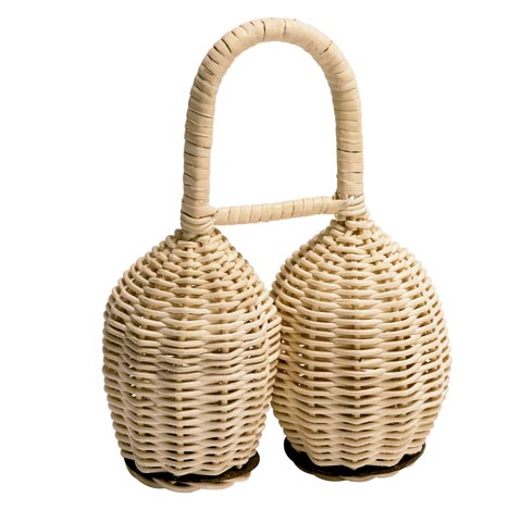 Meinl Double Shaker / Ganza - DO1. Ganza er en dobbel rotting shaker med bunn av kokosnøttskall. To forskjellige kammere gir to forskjellige shaker lyder i samme instrument. Lyden varieres om innholdet treffer rottingen, for en soft lyd, eller bunnen, for en klar lyd med god projeksjon.