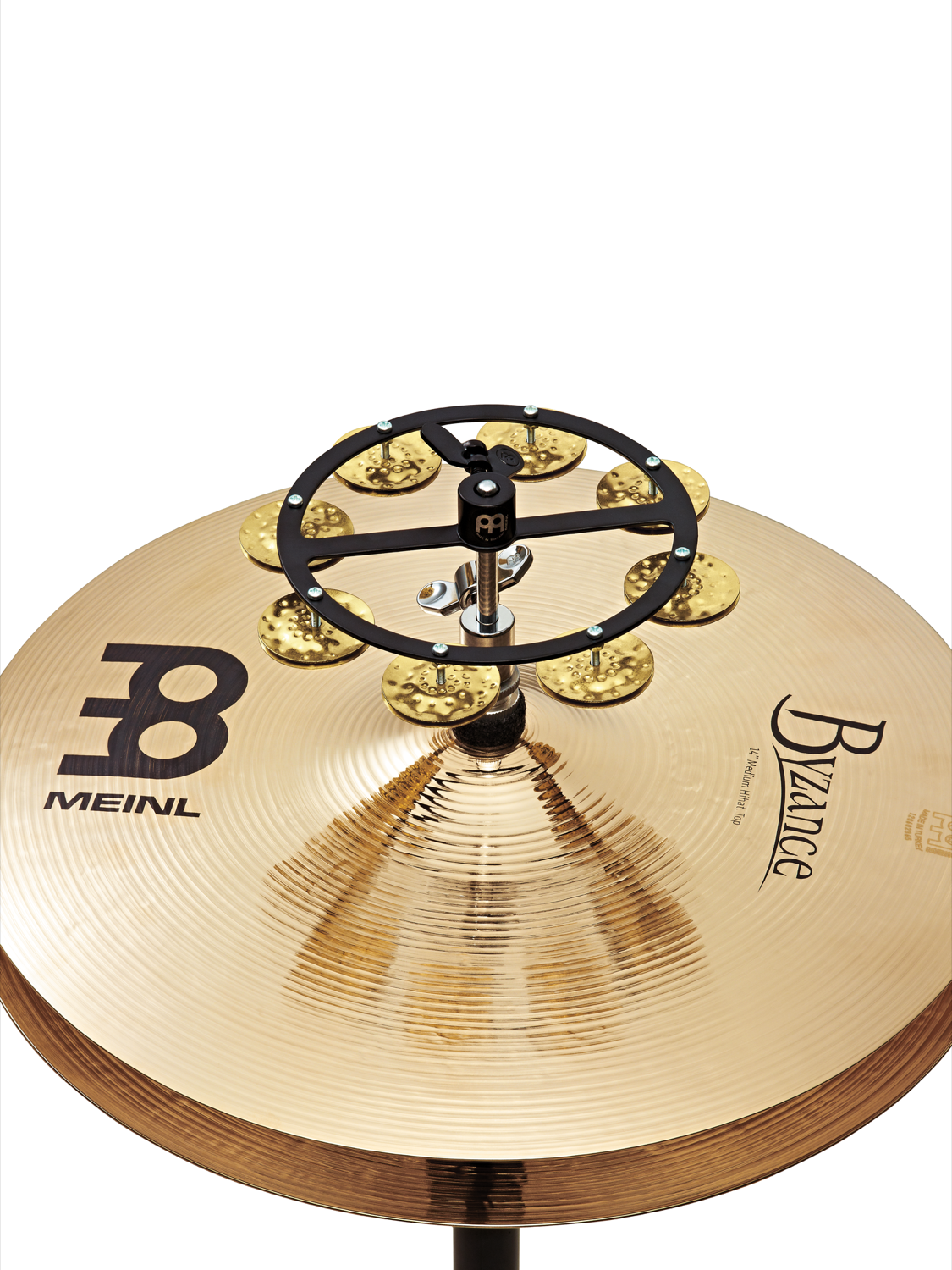 Meinl Headliner Series Hi-hat Tambourine - HTHH1B-BK. Tamburin-ring for feste på Hi-hat stangen. Lager tamburinlyd hver gang du tråkker ned på stativet. Super for legge til tamburin på 2 og 4 tramping f.eks. Enkel og rask å sette på og ta av etter behov, mellom låtene. Hammered Brass Jingles har fyldig og varm lyd. • Størrelse: 5 . • 1 rad Hammered Brass Jingles. • Farge: Black (BK).