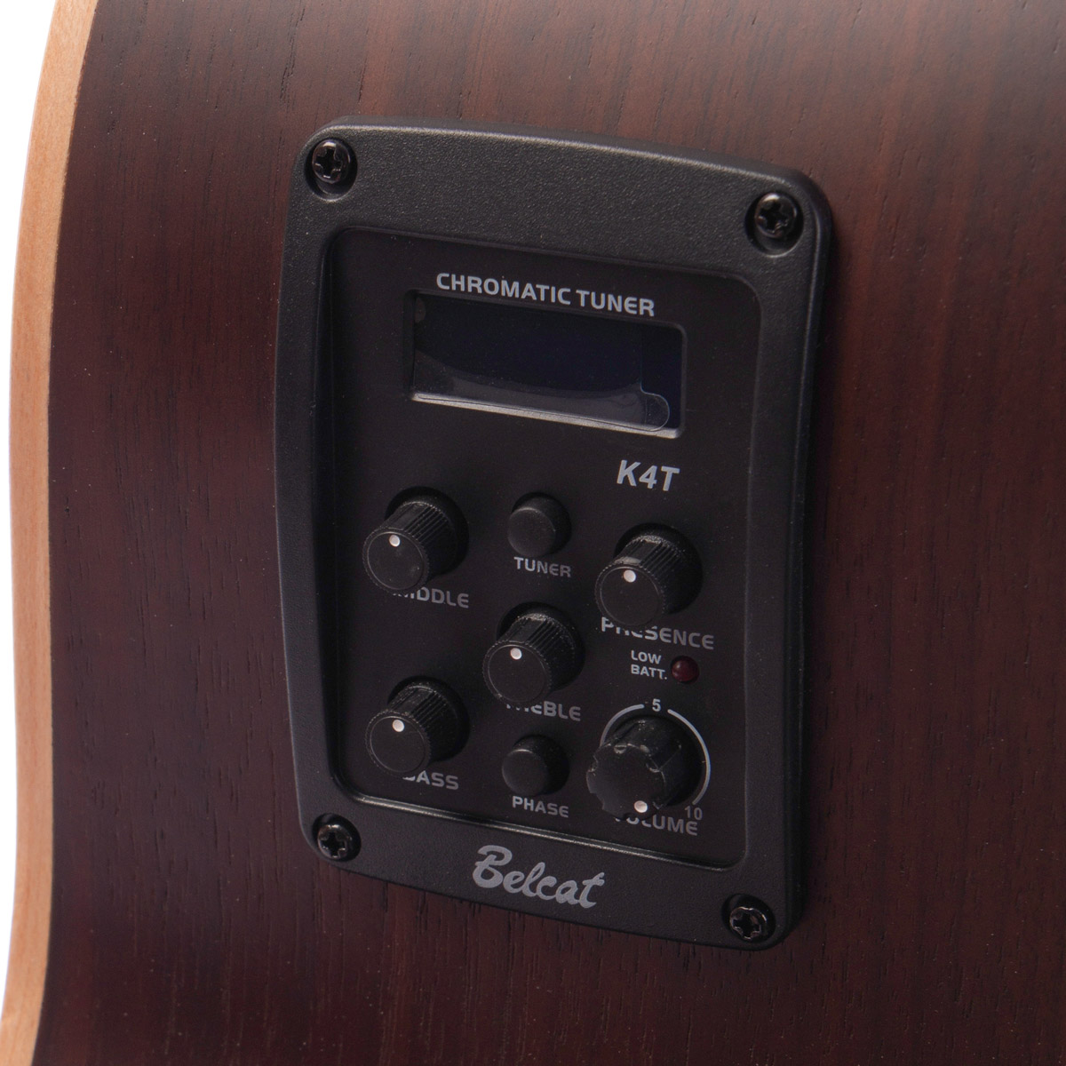 Bassen er bygget i mahogni, et tonewood kjent for sin varme, runde og balanserte klang. Dette gir AB 09 CE DVB et tydelig og musikalsk bassfundament som fungerer godt både til øving, låtskriving og livebruk i akustiske settinger.