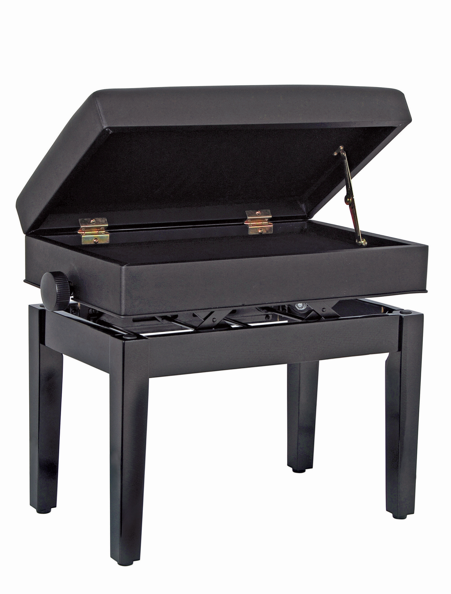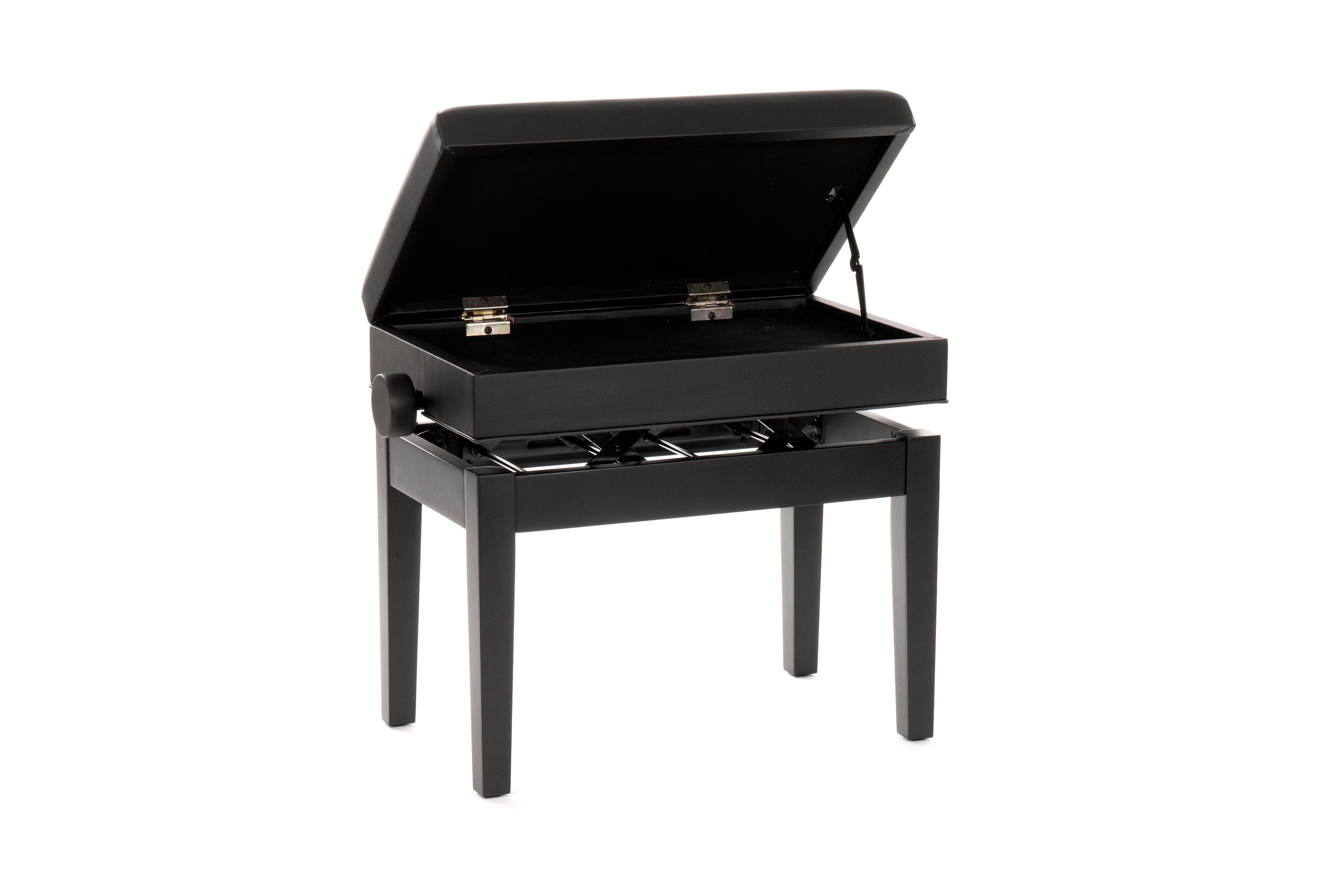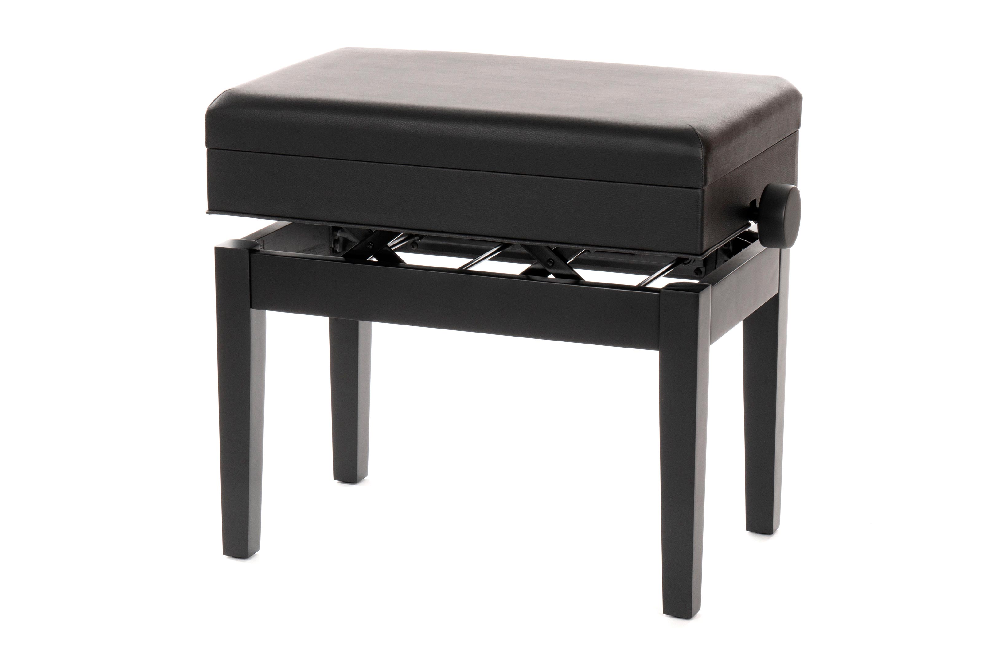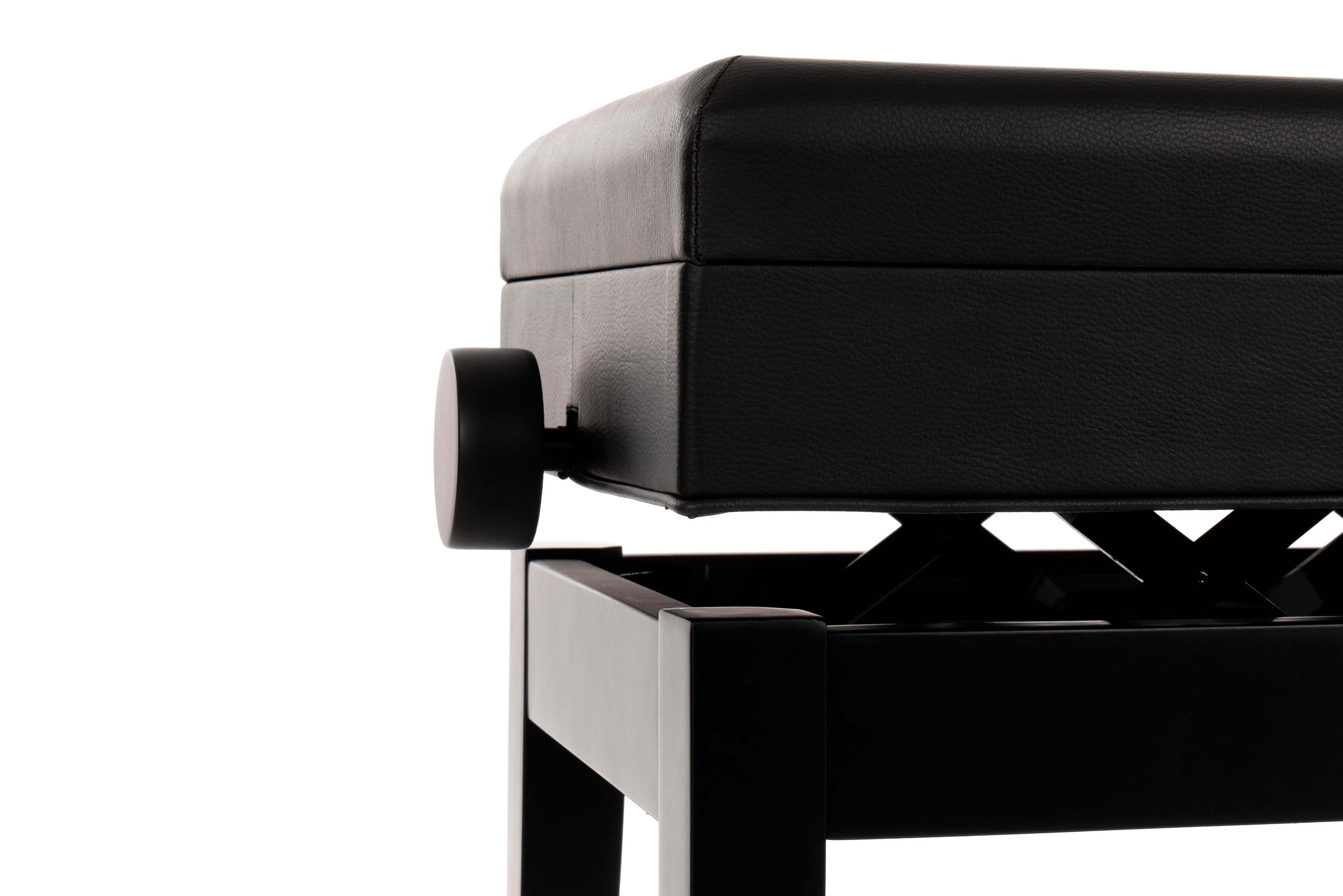 Høydejusterbar krakk i høy kvalitet med noterom. Sort silkematt finish. Sete med god polstring og imitert skinn. 49-57cm (Målt fra gulv til toppen av setet)