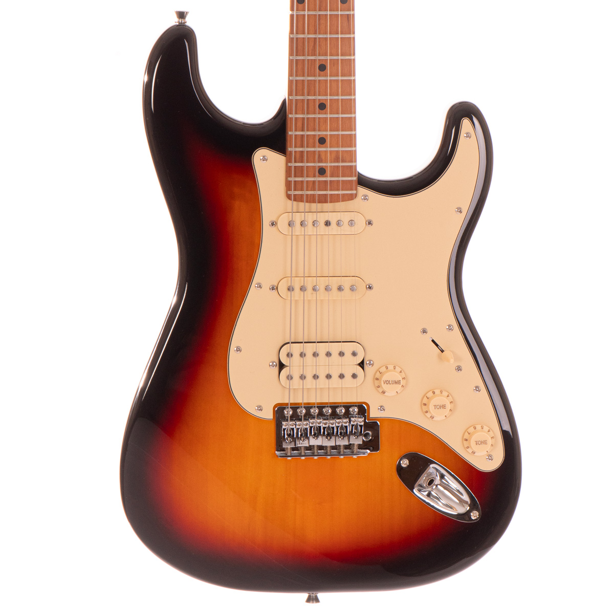 Pickupoppsettet består av humbucker i broposisjon og single coils i midt- og halsposisjon, styrt via en 5-veis pickupvelger. Dette gir fleksible klangmuligheter som dekker alt fra fyldige rytmelyder til mer definerte og klare toner. Finishen i Sunburst gir gitaren et klassisk og tidløst uttrykk.