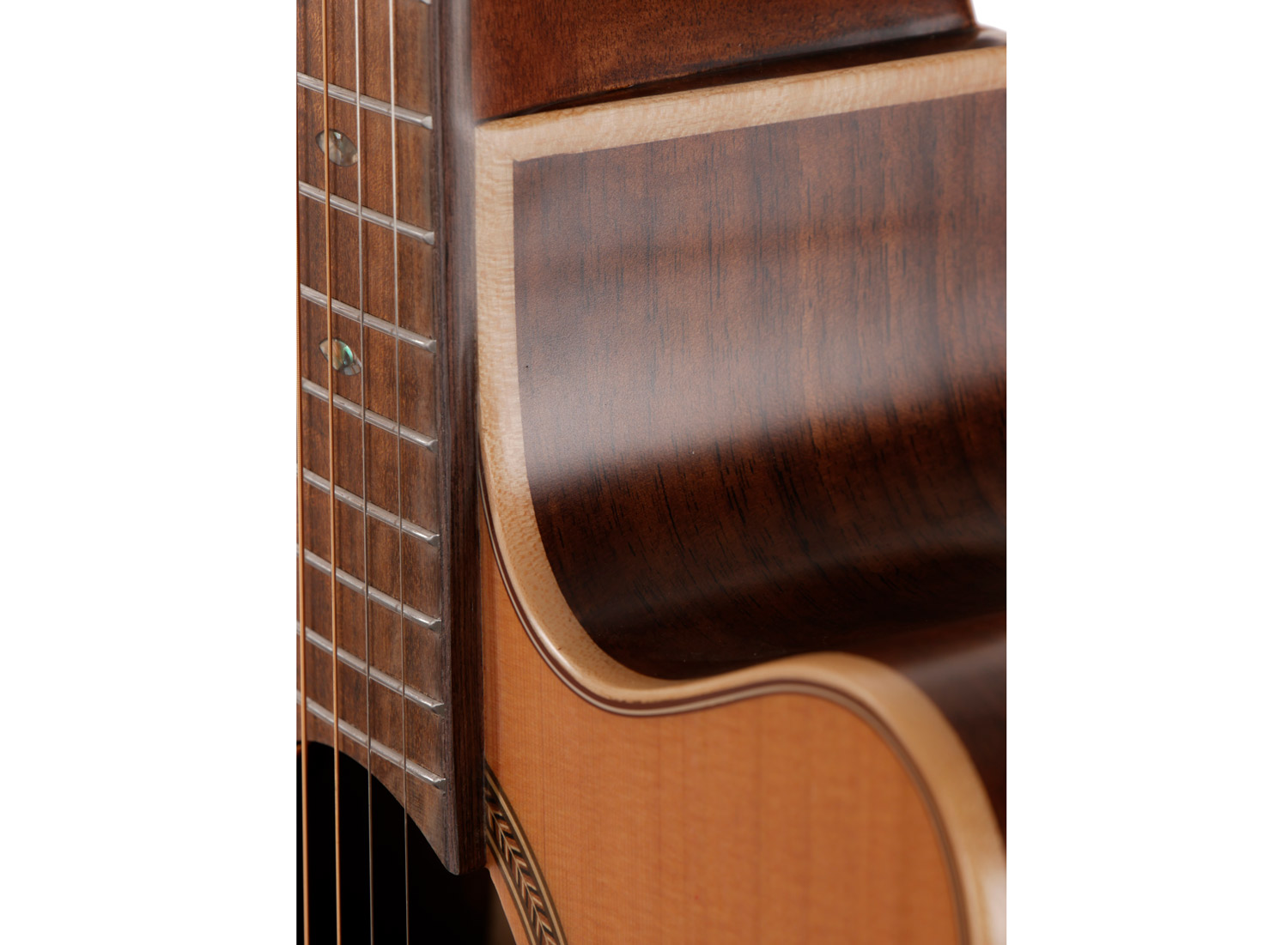 Topp: Heltre seder Sarg/bunn: Sapelli Gripebrett: Peu ferro Hardware: Chrome diecast Preamp: Fishman presys II m/tuner Finish: Matt Farge: Natur