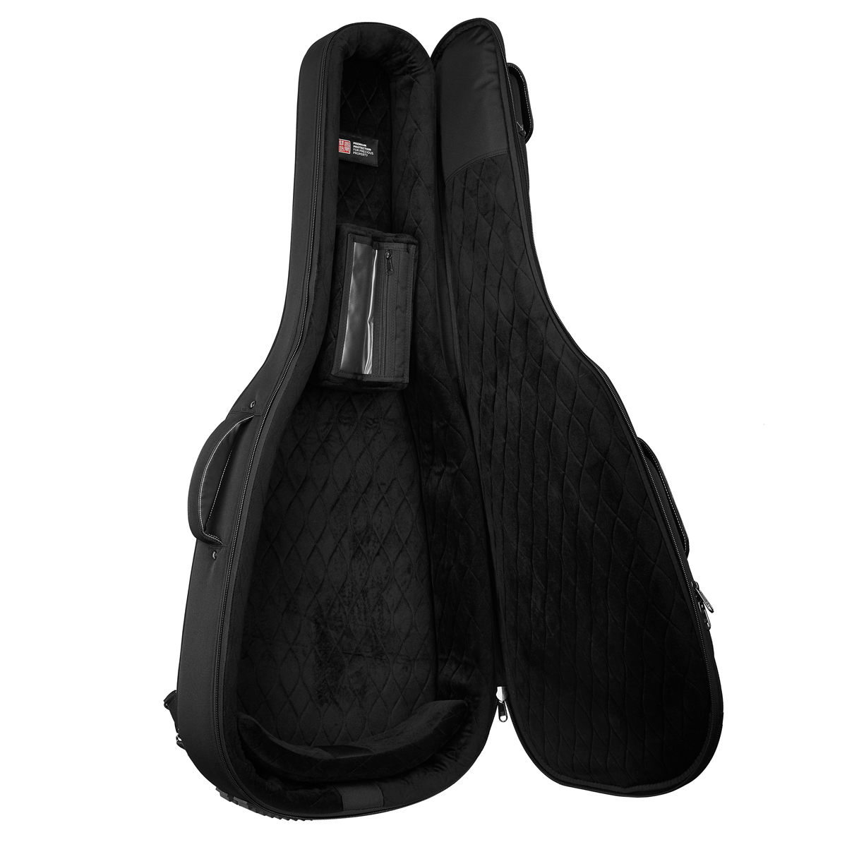 Music Area HAN PRO Classic Guitar Case har den ultimate beskyttelsen med en 360° fullforsterket ABS-struktur, 30 mm polstring med 7 lag, vannavstøtende polyester, nakkekradle med borrelåslås, avtakbar kantbeskyttelse for å beskytte reimknappen, og den har også en stor tilbehørlomme med ulike rom.