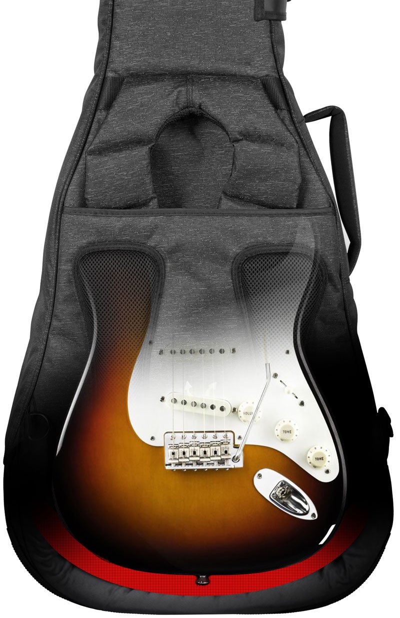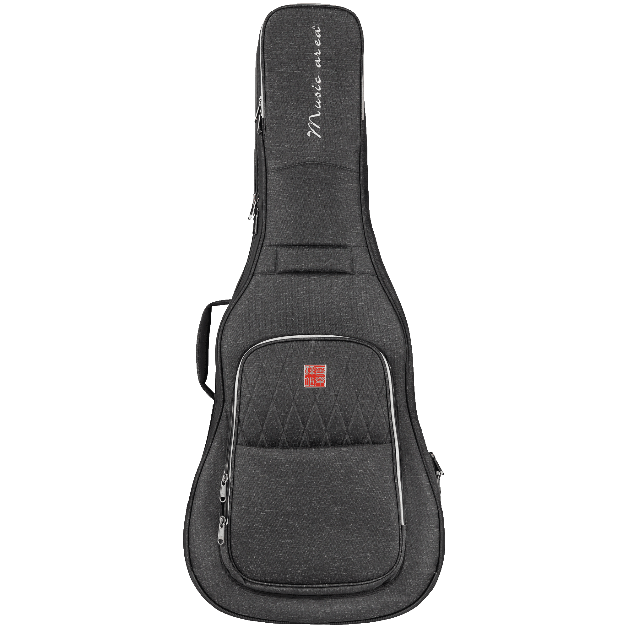 Music Area TANG30 elektrisk gitar- og akustisk gitarbag har ultratykke polstringer over hele interiøret, 30 mm polstring med 6 lag, vannavvisende 900D polyester, nakkestøtte med borrelås, avtagbar beskyttelsespute for å beskytte strapknappen, og en stor tilbehørslomme med ulike rom.