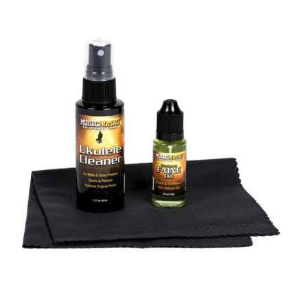 Ukulele Cleaner helps clean and restore matte and gloss finishes. F-ONE Fretboard Oil uses 100% Natural Oils and cleans, conditions and protects on all unfinished Fretboards. Premium Suede Microfiber Cloth is lint free, high quality, and washable - 12" x 12". Smells Great.