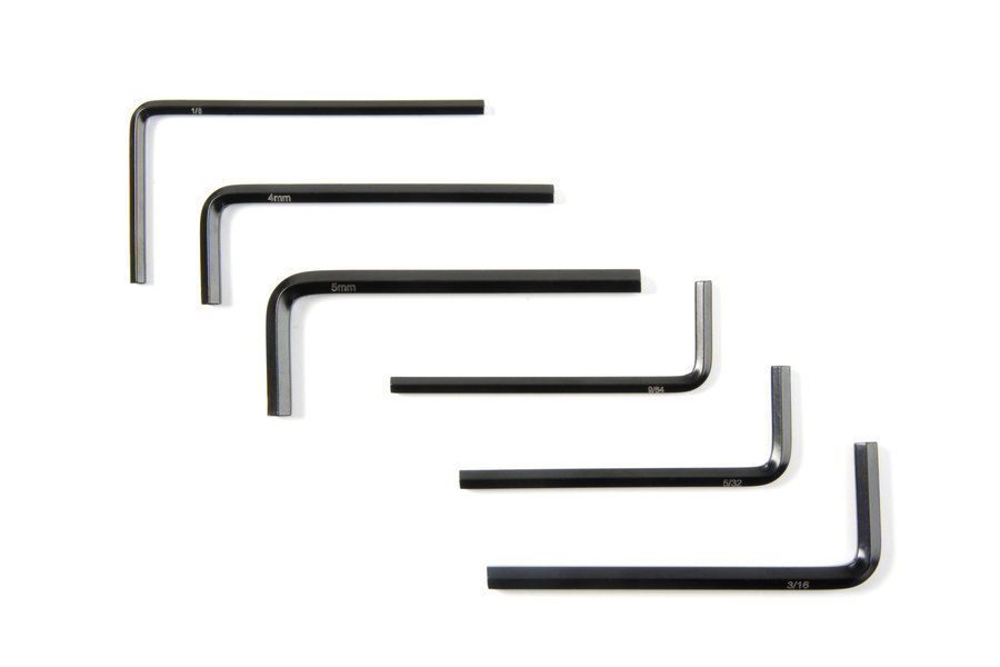 6 Allen key sizes: 5/32", 9/64", 1/8", 3/16", 4mm, 5mm. 3 Socket Wrench sizes: 1/4", 5/16", 7mm and each includes a PH#1 magnetized screwdriver for truss rod covers. Special designed Spoke Wheel tool. 3/8" Flat Head Screwdriver Blade bit for certain truss rods at the heel. Compact, organized and strong aluminum case 3" x 5.5" x 1.4".