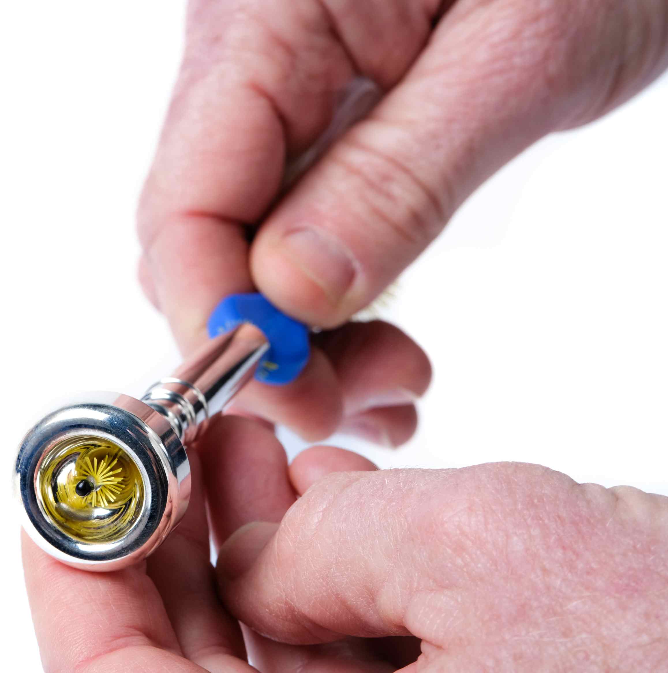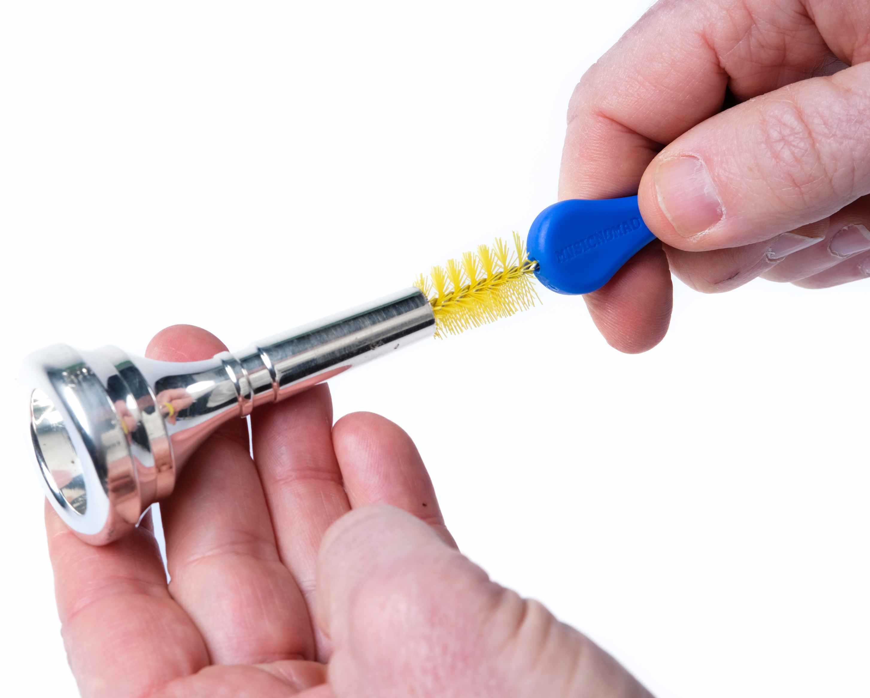 En tosidig børste for messinginstrument-munnstykker hvor du enkelt rengjør begge sider av munnstykket med de forskjellige børstene. Hardheten til fibrene er designet for maksimal effektivitet uten å skrape overflaten.