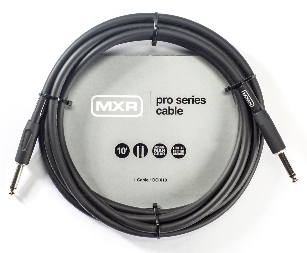 MXR Pro Series instrumentkabler har en meget høy kvalitetsutførelse bade når det gjelder lyd og hardførhet. Lederne er av syrefri kobber (OFC), noes om holder lyden ren og en 95% tekkende OFC spiralskjerming blokkerer uønsket støy samtidig som at kabelen forblir fleksibel og lett. Kabelen er dekket I tykk PVC som både beskytter, gjør kabelen fleksibel og forhindrer at den vikler seg. Den takler tøff scenebruk uten problemer. Førsteklasses metalltilkoblinger med sort gummioverdrag gir høy tilkoblingsstabilitet. Finnes I 10 og 20 fot, med rett- og vinkeljack. Disse kablene skal ikke kunne bli ødelagt ved normal bruk. Derfor kan MXR stolt utlove begrenset livstidsgaranti over hele verden.