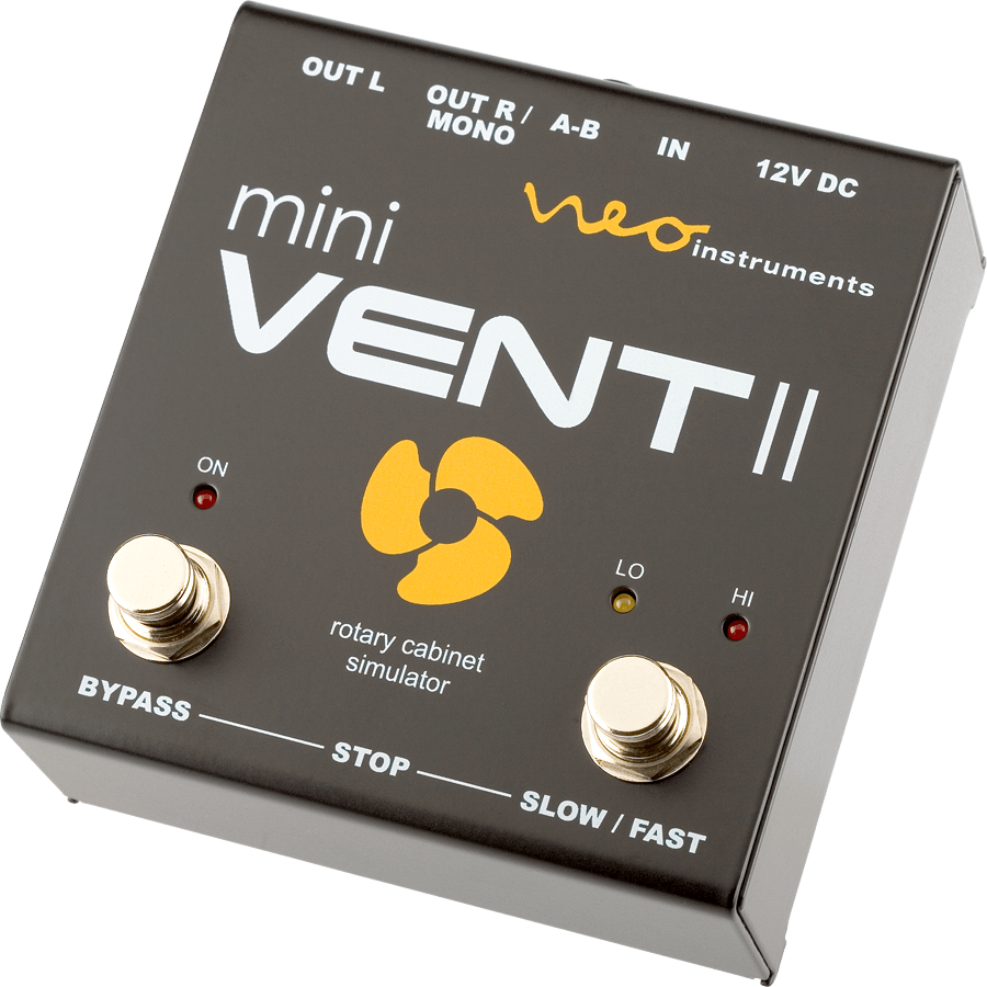 Neo Instruments Mini Vent II er en kompakt rotary-effektpedal utviklet for orgel, keyboard og gitar. Pedalen bygger på samme DSP-kraft som Ventilator II og er laget for å levere fyldig og detaljert emulering av klassiske rotary cabinets i et mer pedalbrettvennlig format.