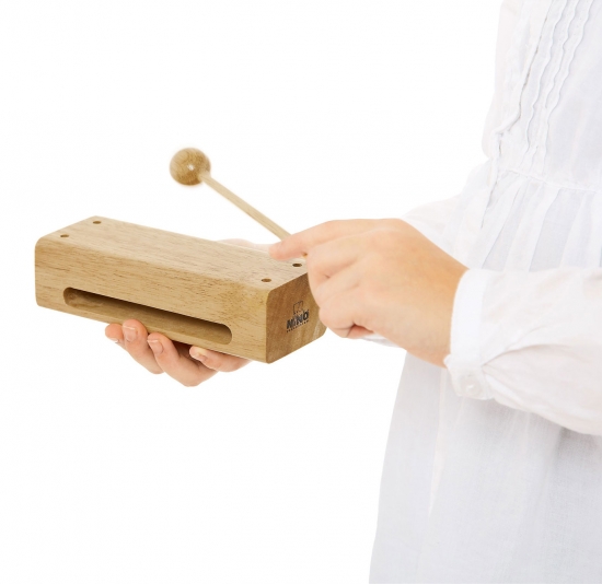 NINO22 NINO Large Wood Block. NINO22 treblokk har en imponerende lyd på tross av sin beskjedne størrelse. Treblokk er en av de eldste kjente rytmeinstrumentene. • Materiale: Gummitre (Hevea brasiliensis Muell.-Arg.). • Størrelse: Large. • Trekølle medfølger. • Anbefalt fra 3 år. NINO® Percussion: Å få lære seg å spille et instrument og skape musikk i sin tidlige barndom gir næring til mange ting. Som f.eks oppfatning, motorikk og evnen til å lære og beholde informasjon. Å skape musikk bygger også opp selvtillit og sosiale evner. Dette er evner som gir fordeler lenge etter barndommen. NINO® Percussion tilbyr et enestående utvalg av musikkinstrumenter designet spesielt for barn. Instrumenter som mer enn gjerne møter dagens krav i den tidlige musikkutdannelsen i barnehagen og på grunnskolen. Det er viktig å poengtere at NINO® Percussion ikke er leker. Dette er ordentlige musikkinstrumenter, designet med tanke på sikkerhet, holdbarhet, tiltrekkelse og funksjon. Og viktigst av alt er at de høres riktige ut og er musikalske. Faktum er at den eneste forskjellen mellom NINO® Percussion og tilsvarende instrumenter for voksne, er form og farge. Disse tiltalende og behagelige kreasjonene har alle blitt designet i Tyskland. Uansett om du utøver musikk alene eller i en gruppe så er funksjonaliteten og lydkvaliteten på NINO® Percussion instrumentene så god at de er et opplagt valg for barn og ungdomer, samt for deres lærere.