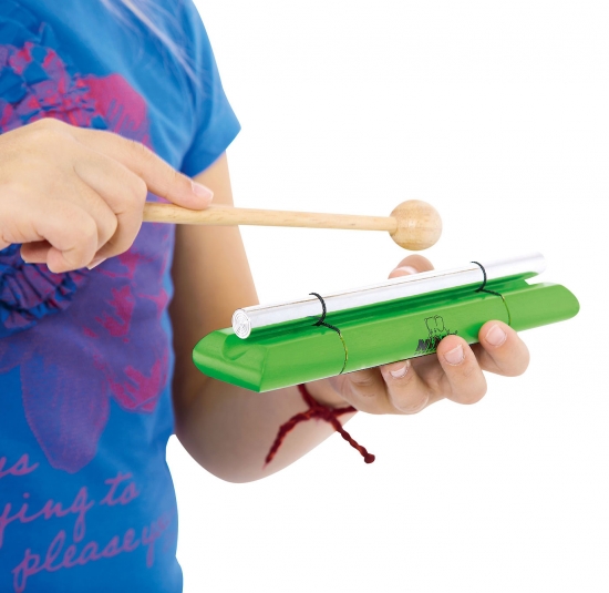 NINO597L Energy Chimes gir en distinkt ''ping-lyd''. Tonestaven henger fritt og gir en lang sustain. • Materiale: Base av tre. Tonestav av sølvanodisert aluminiumslegering. • Trekølle medfølger. • Størrelse: Large. • Farge: Naturell. • Anbefalt fra 3 år. NINO® Percussion: Å få lære seg å spille et instrument og skape musikk i sin tidlige barndom gir næring til mange ting. Som f.eks oppfatning, motorikk og evnen til å lære og beholde informasjon. Å skape musikk bygger også opp selvtillit og sosiale evner. Dette er evner som gir fordeler lenge etter barndommen. NINO® Percussion tilbyr et enestående utvalg av musikkinstrumenter designet spesielt for barn. Instrumenter som mer enn gjerne møter dagens krav i den tidlige musikkutdannelsen i barnehagen og på grunnskolen. Det er viktig å poengtere at NINO® Percussion ikke er leker. Dette er ordentlige musikkinstrumenter, designet med tanke på sikkerhet, holdbarhet, tiltrekkelse og funksjon. Og viktigst av alt er at de høres riktige ut og er musikalske. Faktum er at den eneste forskjellen mellom NINO® Percussion og tilsvarende instrumenter for voksne, er form og farge. Disse tiltalende og behagelige kreasjonene har alle blitt designet i Tyskland. Uansett om du utøver musikk alene eller i en gruppe så er funksjonaliteten og lydkvaliteten på NINO® Percussion instrumentene så god at de er et opplagt valg for barn og ungdomer, samt for deres lærere.