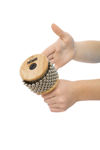NINO702 - NINO Medium Cabasa. NINO702 er en Cabasa i en litt mindre størrelse designet for barn. Den består at et sylinderformet lydlkammer i tre som er kledd med en riflet stålplate, omgitt av et nett med stålperler. Ved å holde i håndtaket med den ene hånden, legge den andre hånden løst rundt stålperlene, for så å dra disse rytmisk rundt lydkammeret, skaper man den klassiske Cabasa lyden. • Materiale: Tre og stål. • Størrelse: Medium (15cm). • Anbefalt fra 5 år. NINO® Percussion: Å få lære seg å spille et instrument og skape musikk i sin tidlige barndom gir næring til mange ting. Som f.eks oppfatning, motorikk og evnen til å lære og beholde informasjon. Å skape musikk bygger også opp selvtillit og sosiale evner. Dette er evner som gir fordeler lenge etter barndommen. NINO® Percussion tilbyr et enestående utvalg av musikkinstrumenter designet spesielt for barn. Instrumenter som mer enn gjerne møter dagens krav i den tidlige musikkutdannelsen i barnehagen og på grunnskolen. Det er viktig å poengtere at NINO® Percussion ikke er leker. Dette er ordentlige musikkinstrumenter, designet med tanke på sikkerhet, holdbarhet, tiltrekkelse og funksjon. Og viktigst av alt er at de høres riktige ut og er musikalske. Faktum er at den eneste forskjellen mellom NINO® Percussion og tilsvarende instrumenter for voksne, er form og farge. Disse tiltalende og behagelige kreasjonene har alle blitt designet i Tyskland. Uansett om du utøver musikk alene eller i en gruppe så er funksjonaliteten og lydkvaliteten på NINO® Percussion instrumentene så god at de er et opplagt valg for barn og ungdomer, samt for deres lærere.