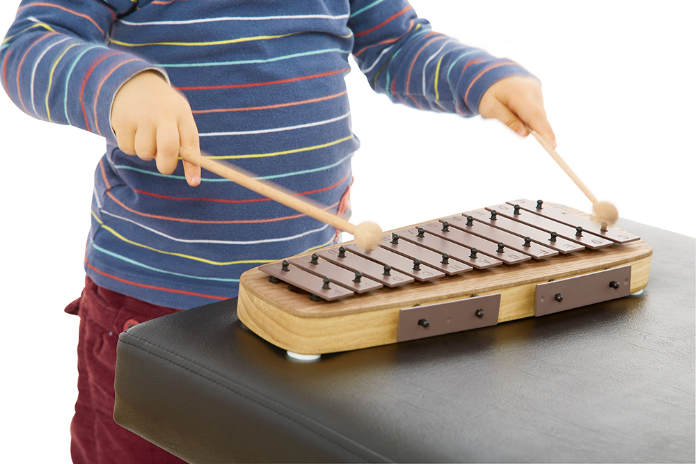 NINO902 er et kompakt klokkespill utviklet for barns grunnleggende musikkunnskaper! Klokkespillet omfatter tonespekteret fra C3 til F4. Den har også tonene Bb og F# plasert på siden, for å komplementere C-dur skalaen. Klangstavene er flyttbare om du vil ha flere eller færre toner, beroende på hvilken vanskelighetsgrad som ønskes. • Matriale: kropp av tre. Klangstaver i stål. • Toner: c3, d3, e3, f#3, g3, a3, BB3, b3, c4, d4, e4, f4. • Medfølger 2 stk. trekøller. • Anbefalt fra 5 år. NINO® Percussion: Å få lære seg å spille et instrument og skape musikk i sin tidlige barndom gir næring til mange ting. Som f.eks oppfatning, motorikk og evnen til å lære og beholde informasjon. Å skape musikk bygger også opp selvtillit og sosiale evner. Dette er evner som gir fordeler lenge etter barndommen. NINO® Percussion tilbyr et enestående utvalg av musikkinstrumenter designet spesielt for barn. Instrumenter som mer enn gjerne møter dagens krav i den tidlige musikkutdannelsen i barnehagen og på grunnskolen. Det er viktig å poengtere at NINO® Percussion ikke er leker. Dette er ordentlige musikkinstrumenter, designet med tanke på sikkerhet, holdbarhet, tiltrekkelse og funksjon. Og viktigst av alt er at de høres riktige ut og er musikalske. Faktum er at den eneste forskjellen mellom NINO® Percussion og tilsvarende instrumenter for voksne, er form og farge. Disse tiltalende og behagelige kreasjonene har alle blitt designet i Tyskland. Uansett om du utøver musikk alene eller i en gruppe så er funksjonaliteten og lydkvaliteten på NINO® Percussion instrumentene så god at de er et opplagt valg for barn og ungdomer, samt for deres lærere.