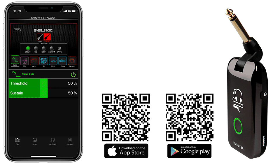 Via hodetelefonutgangen på Mighty Plug kan du høre både ditt instrument og lyden