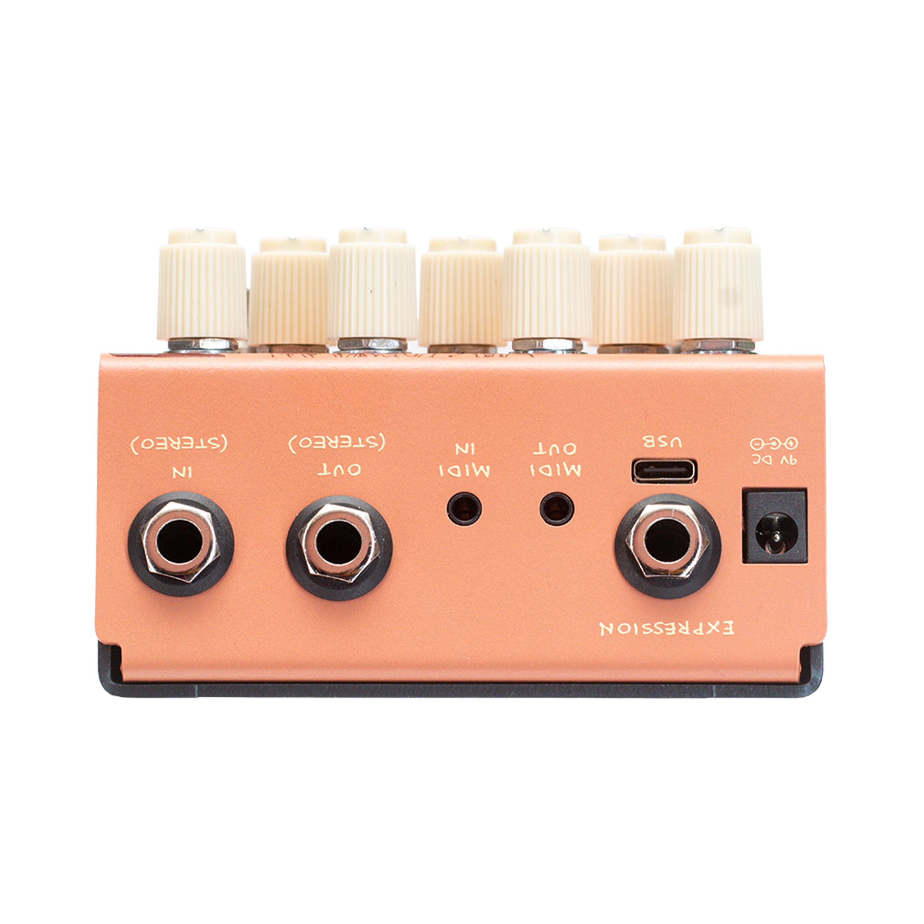 Stereodelay i Terracotta-finish med karakteristisk oil can-lyd, avansert kontroll, MIDI, modulasjon og lagringsbare forhåndsinnstillinger