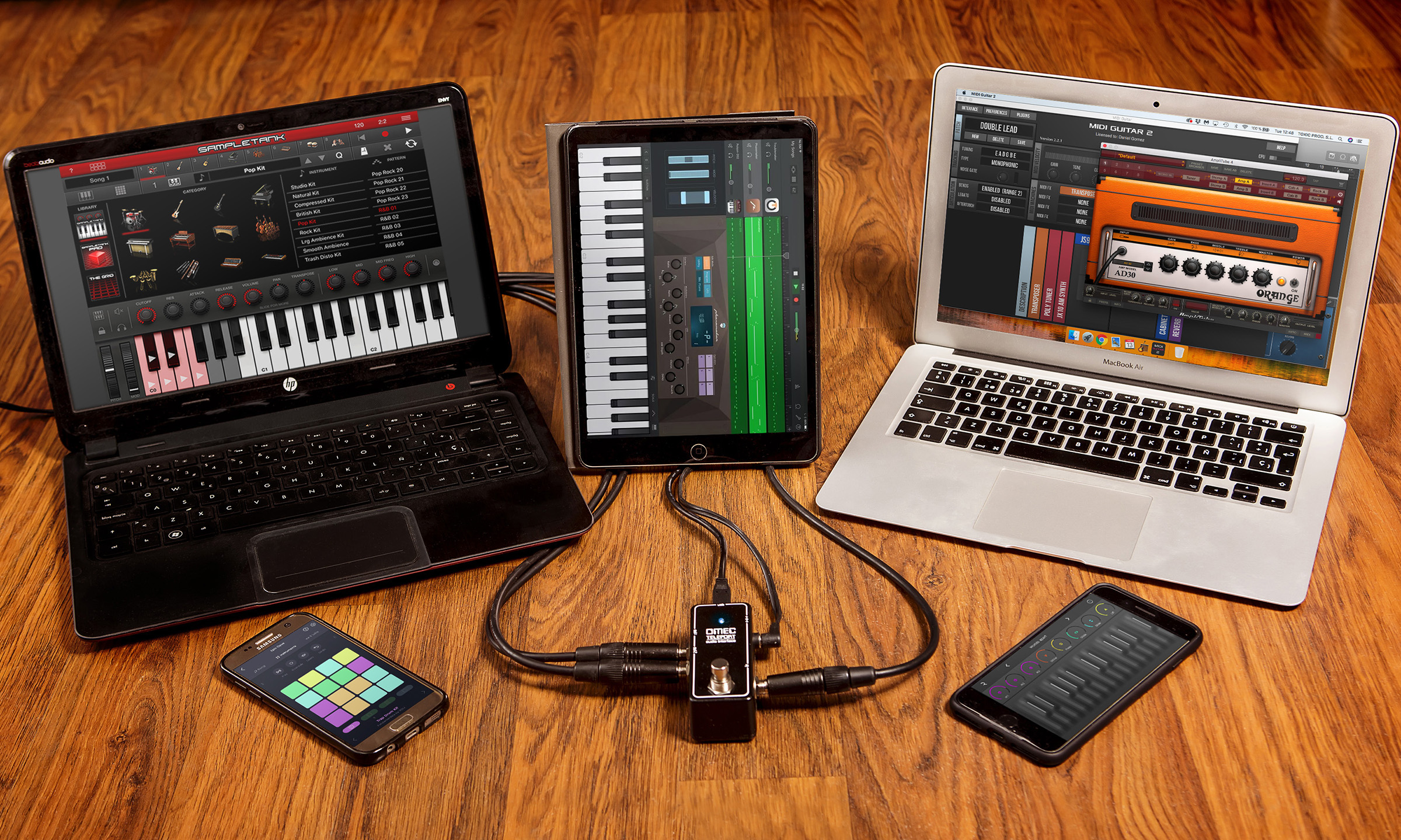 OMEC Teleport Ett ljudinterface för live eller studiobruk i pedalform. Få med dig vilka pluggar du vill på ditt pedalbord An audio interface for the studio and gig The OMEC Teleport interface is a universal connection device (IOS, Android, Mac, PC) without any specific drivers or software requirements. It features high quality ADC/DAC converters – through a USB B connector – housed in a small effect pedal enclosure. The Teleport allows you to convert both analog audio signals (an instrument for example) to digital to be processed with the many applications available. Additionally, the Teleport gives you the ability to convert digital audio signals to analogue (through mixers, D.I. boxes, amplifiers, etc.). With this versatility the Teleport can be used for a wide range of applications: musicians that want to play, record, mix or process their sound, with the autonomy provided by mobile devices; Bluetooth connected musicians, like keyboard players or DJs employing the same devices for their sessions; even the amateur music lover who wants to convert music stored on their devices to analogue with renewed quality.